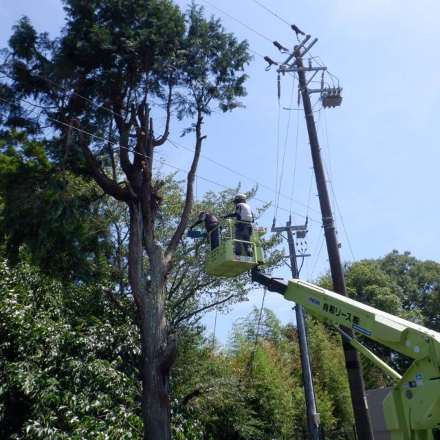 本日は近くの工場の敷地内の樹木の枝が電線にかかってしまいこの季節、台風等の